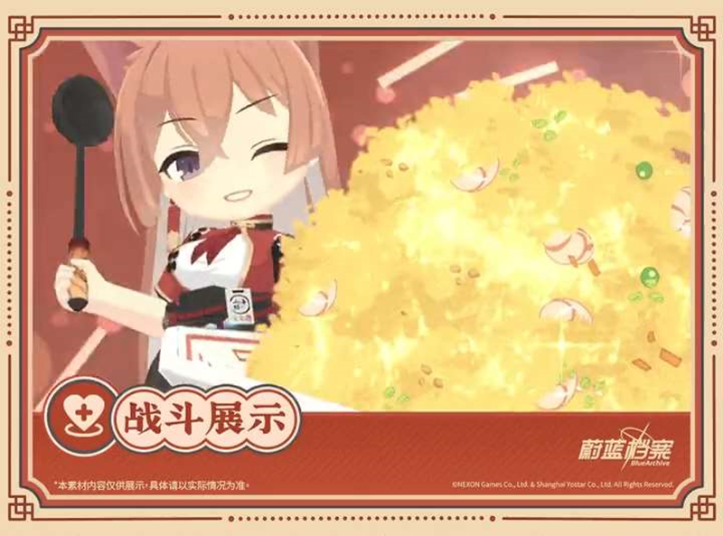 必杀技能「天下第一美味!」:给自身以外的1名我方成员炒一碗炒饭,使其获得恢复效果;若目标周围有其他未收到过炒饭的我方成员,炒饭会跳向成员。