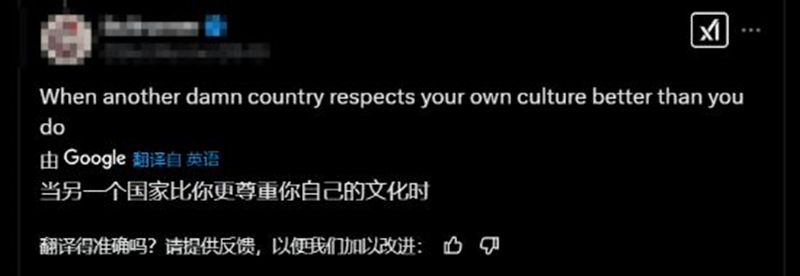 下方评论区有玩家锐评:“当另一个国家比你更尊重你自己的文化时”,引发玩家们的一致赞同。另外一名玩家无奈表示:“当然,我们西方人也能创造出美女角色,但我们不会这么做。原因嘛...你懂得!”