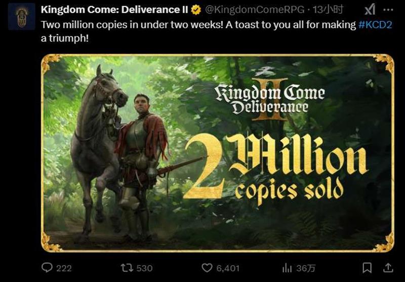 由战马工作室开发、Deep Silver 发行的中世纪开放世界角色扮演游戏《天国:拯救2》自2025年2月5日发售以来,便以惊人的速度赢得了玩家的青睐。截至昨日,全球销量已经突破200万份,创下了令人瞩目的销售里程碑。开发团队在社交平台上激动宣布:“为这场大获全胜致敬所有人!”