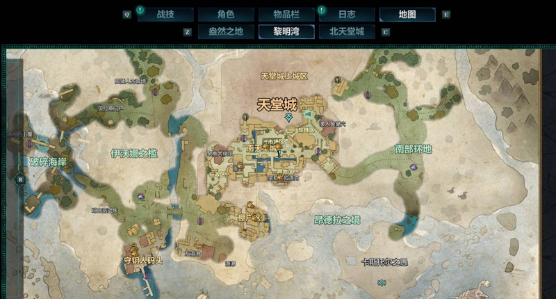 最后就是非常重要的地图,玩家没有探索过的区域会被黄色的迷雾挡住,解锁这些迷雾后可以在地图看到详细的信息。