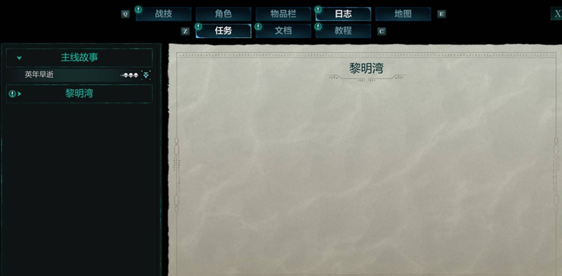 在日志方面,我们可以看到目前接取的所有主支线任务,开局以来收集的所有重要文档与游戏本身的百科。