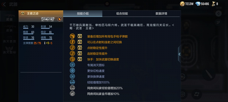 属性方面装备后可增加所有背包手枪子弹数,在副武器系列中该属性也是CFer比较关心的,手枪子弹数的提升可以为使用者提供持续的火力输出。值得注意的是王者之迹可在点射和连射之间切换,而且点射稳定性和连射稳定性都得到了提升。