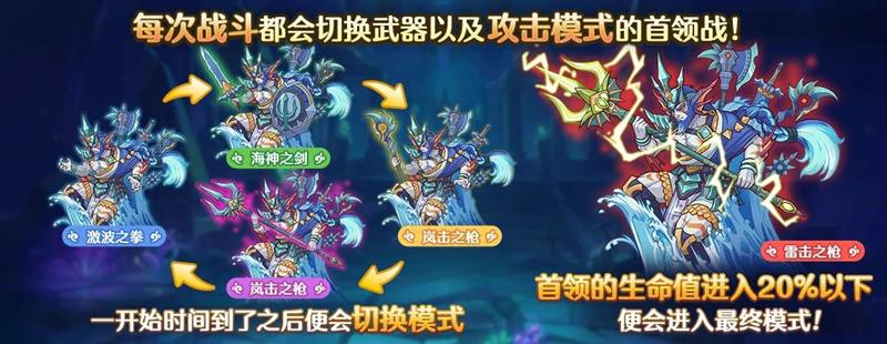 波塞冬共有5种攻击模式,每次挑战其攻击模式都会改变。
