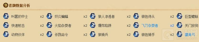 普通难度下:使用T7猎即可轻松过关,由于BOSS会召唤大量1/1的随从,并将他们BUFF成嘲讽状态,所以起手找下飞刀、爆炸陷阱、放狗之类即可。
