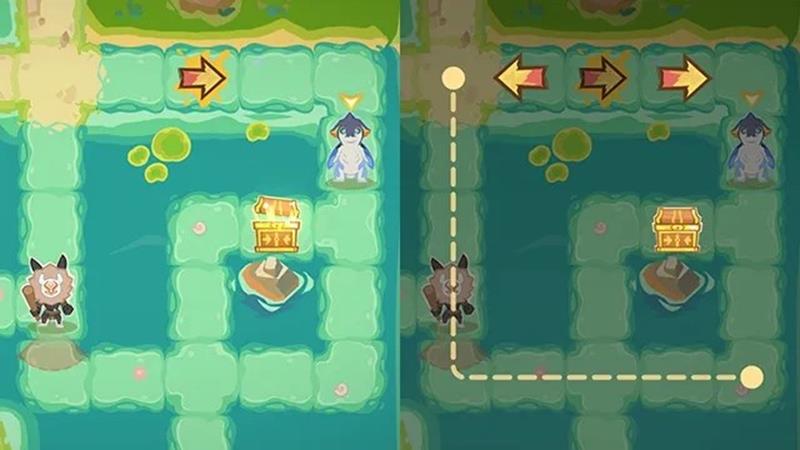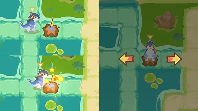 在「龙龙寻宝」玩法中,旅行者需要通过更改各个路口的提示方向,规划路线,引导小龙行进,从而完成各个关卡的寻宝目标。