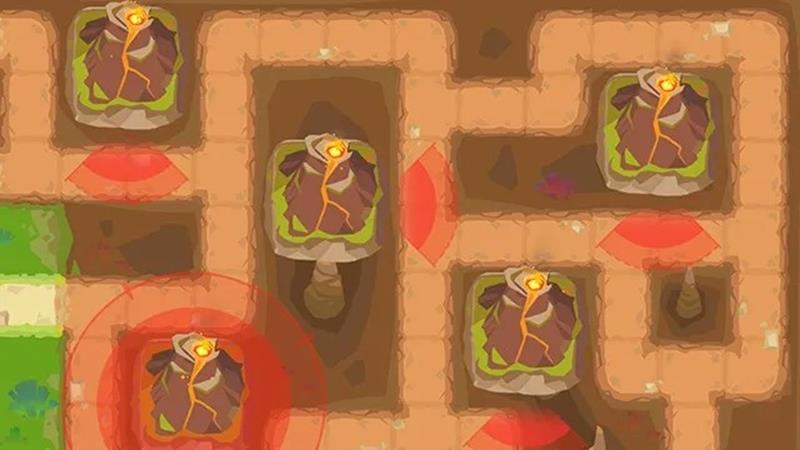 场地中存在哨塔,其上的敌人将周期性改变警戒方向,小龙进入其警戒区域后将被发现,需要谨慎规划行动路线,进行规避。