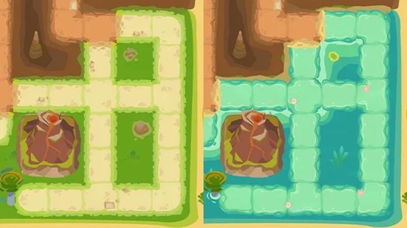 场地中存在间歇性涨落的潮汐。每隔一段时间,部分区域将在陆地和水域两种地形之间切换,需要观察情况,派遣合适的小龙上阵。