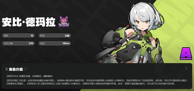 安比是绝区零的看板娘,绝区零的游戏图标就是安比。狡兔屋的成员之一,喜欢电影,因为缺乏某些常识,还会把故事当真而去效仿电影里的情节。是个超级大胃王,喜欢吃汉堡。