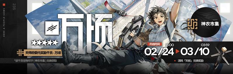 主要奖励:活动干员【★★★★★:万顷】、【大荒天师苑】家具(部分)、模组养成材料、「天桩」等