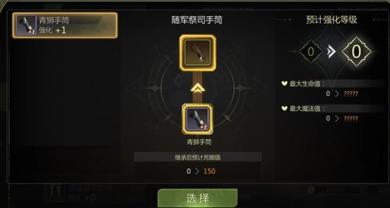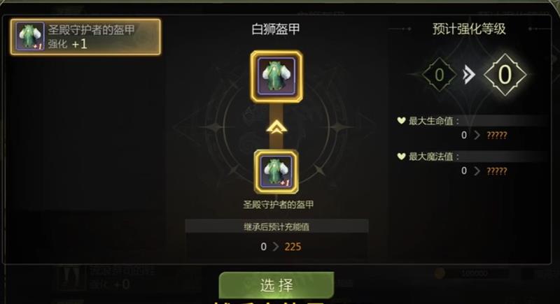 选择装备:分别选择想要继承的装备和需要被继承的新装备。装备的话只有相同部位的可以进行继承。例如头盔只能继承给头盔这样。
