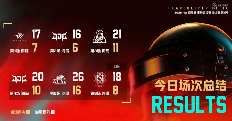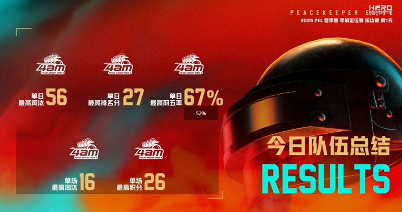 和平精英2025PEL春季赛季前定位赛突围赛Day1比赛已经结束,当天战报如下: