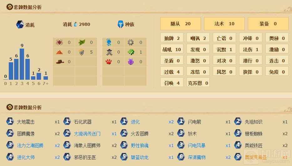 这套牌本身的费用也不高,卡手的概率也较低,所以有很大的可能性在新版本大放光彩。
