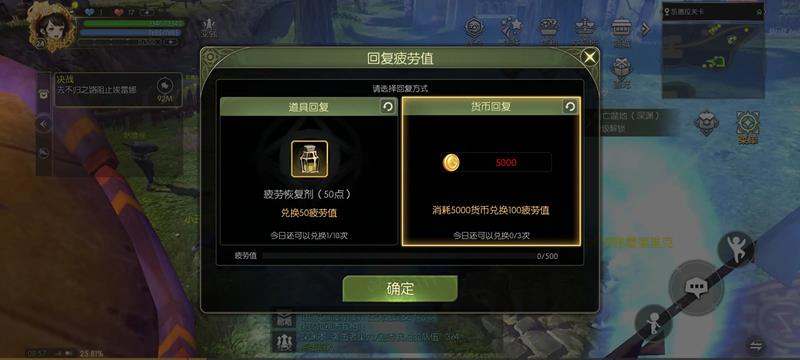 购买恢复:疲劳值可使用龙币和金币购买,每天可购买3次。
