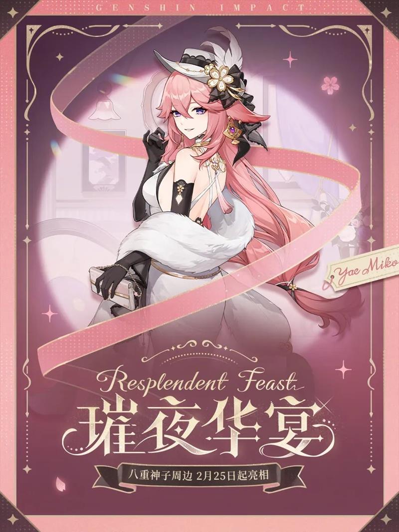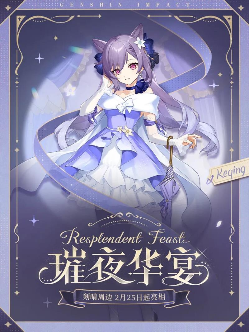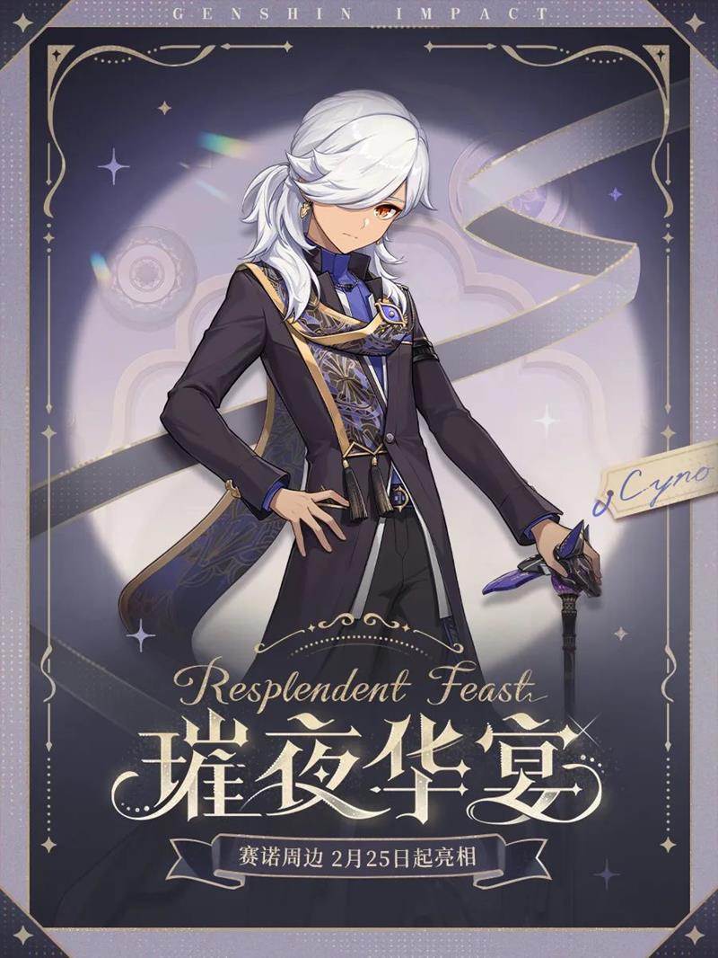 《原神》于2025年2月21日宣布推出「璀夜华宴系列」周边特别企划,迪卢克、刻晴、达达利亚、八重神子、赛诺等角色将出席该企划的晚宴。相关系列商品及上架资讯将于2月25日起陆续公布。