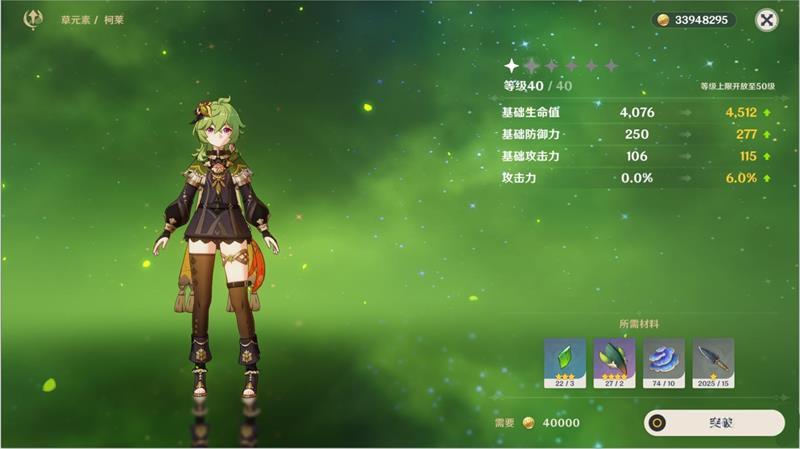 树王圣体菇可以用作柯莱的突破素材,柯莱的养成共计需要至多168个树王圣体菇。