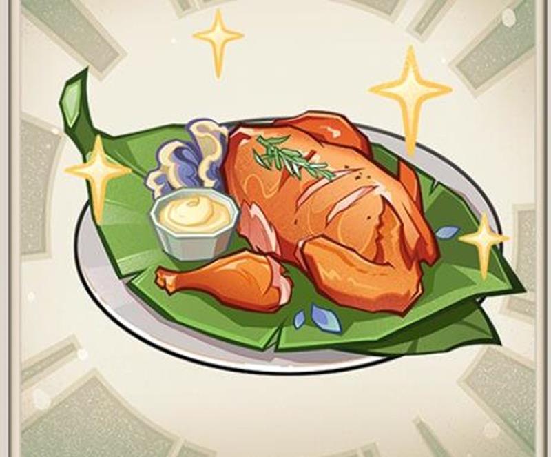 2树王圣体菇+1帕蒂沙兰+1香辛料+3禽肉=唐杜尔烤鸡。队伍中所有角色攻击力提高320点,暴击率提升10%,持续300秒。多人游戏时仅对自己的角色生效。