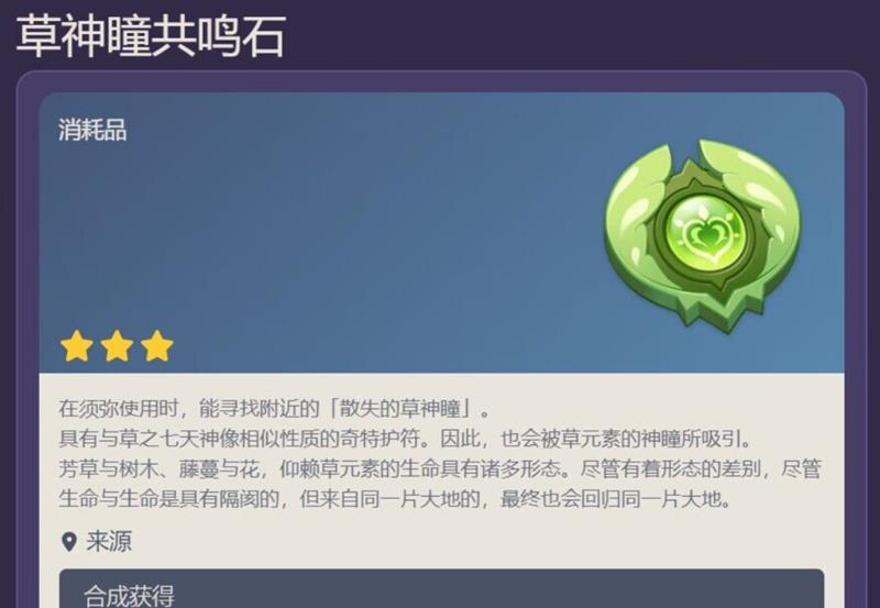 在须弥使用时,草神瞳共鸣石能寻找附近的「散失的草神瞳」。