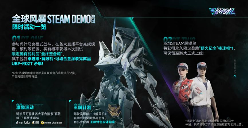 5.Steam愿望单活动玩家将《解限机》添加至Steam愿望单后,可领取“全球风暴”测试限定帽子饰品【薪火纪念】,该奖励可在游戏正式上线后继承。
