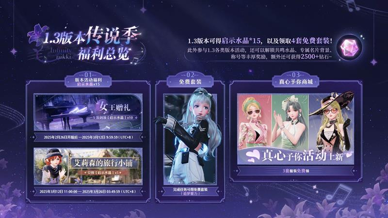 参与1.3各类版本活动,还可以解锁共鸣水晶、专属名片背景、称号等丰厚奖励,额外还可获得2500+钻石。
