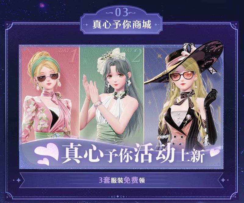 在真心予你活动商城中,可免费领取共计3套服装。