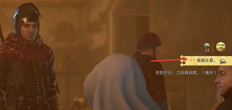 2、对话到夫人想听自己的冒险故事,选择“我很乐意”。