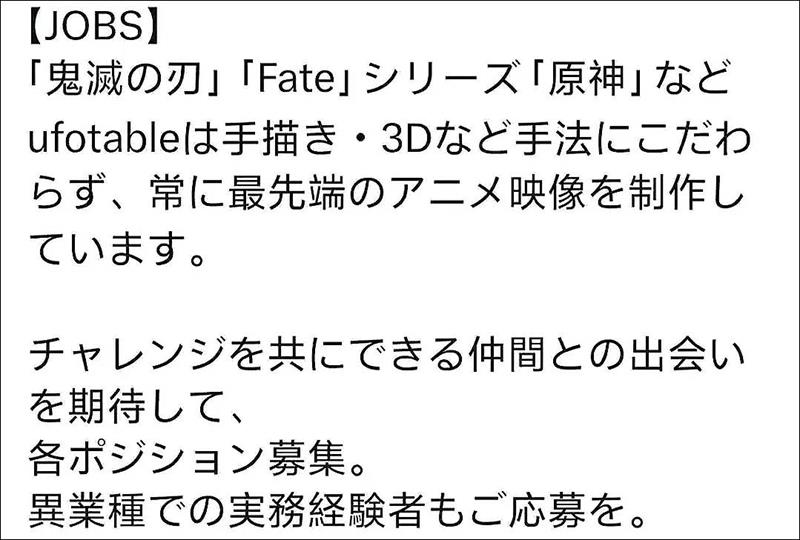这一则招募的意思是公司职位需要制作鬼灭之刃,原神等前沿的动画视频,无论是手绘还是3D的方式都可以。