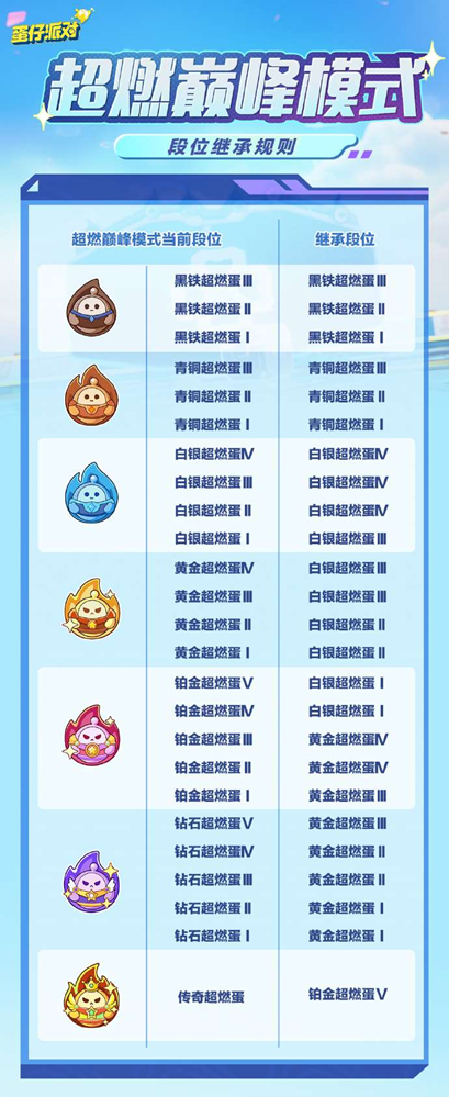 以上就是蛋仔派对超燃竞技场巅峰赛段位继承规则段位重置图的全部内容了,更多游戏资讯,攻略内容敬请关注切游网,您的支持是我们努力的动力!