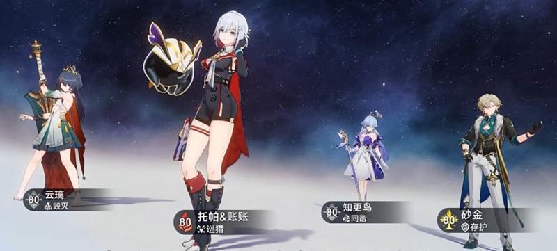 队伍中云璃托帕作为双C,知更鸟为核心辅助,砂金为次要辅助以及生存保障。