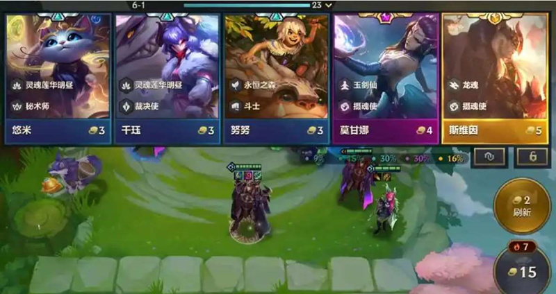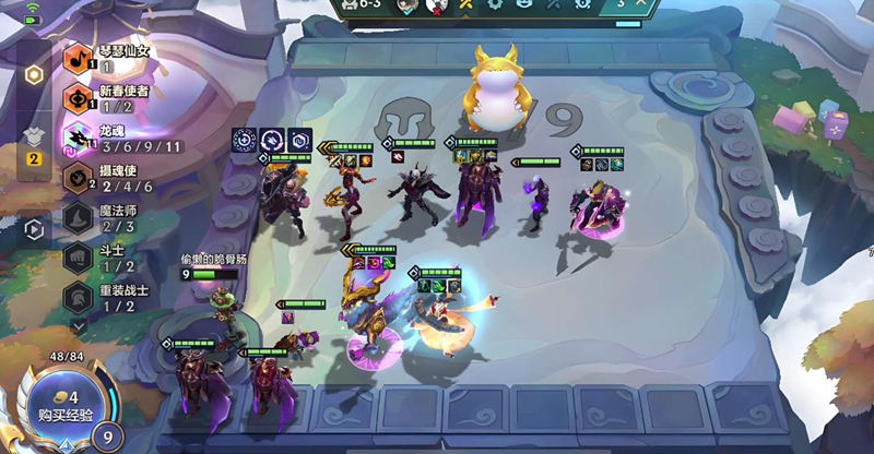 6人口时候凑齐6龙魂羁绊(布隆、布兰德、崔丝塔娜、奥拉夫、希瓦娜、龙王),此时阵容强度较高,可以稳住血量。