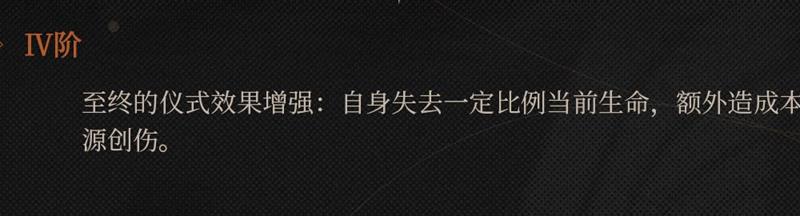 IV阶 至终的仪式效果增强:自身失去一定比例当前生命,额外造成本源创伤。