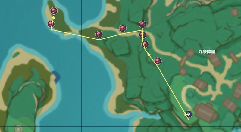 血斛可在稻妻名椎滩等地采集,下面是详细的血斛采集路线。