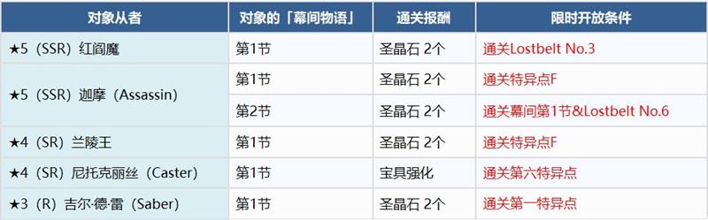 此外,从2月27日维护后到3月13日周四18点59分,Lostbelt No.7和奏章I虚数罗针内界平面之月相关从者的幕间物语将限时开放,即使尚未拥有这些从者,也能体验幕间物语,通关后可获得额外奖励。