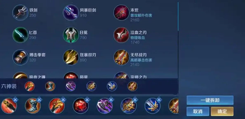 出装顺序:追击刀锋+急速战靴+暗影战斧+泣血之刃+破军+贤者的庇护/名刀·司命。
