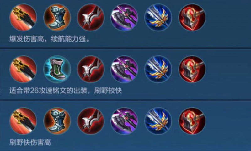 出装思路:这套出装注重高爆发和快速切入战场秒杀脆皮。暗影战斧提供穿透和冷却缩减,泣血之刃增强续航,破军提升爆发伤害,名刀或复活甲用于保命。