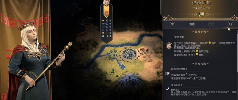 此外,她的出生点附近必定会有一个自然奇观,也就是说开局时玩家可以直接获得300金币。