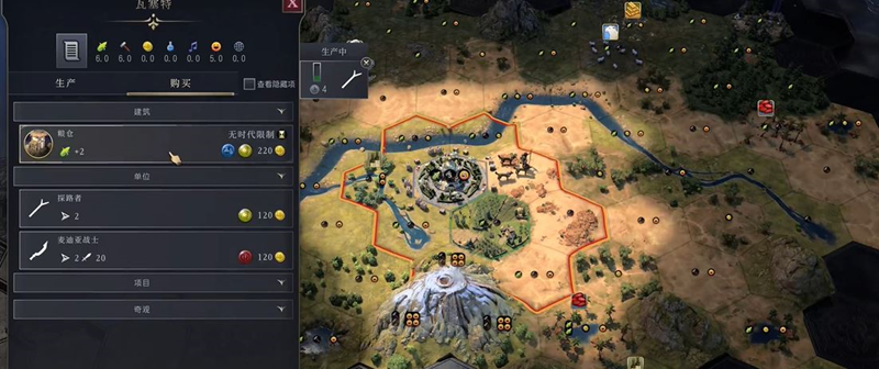3、使用开局获得的300金币购买一个粮仓,它的作用是增加城市的粮食产出。