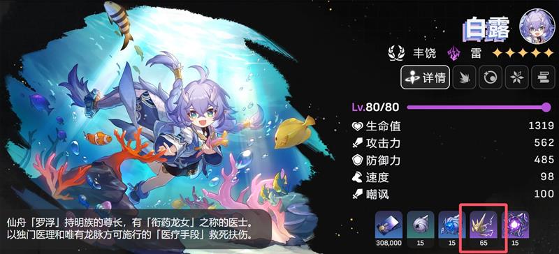 白露的角色升阶(突破)累计需要消耗65个往日之影的雷冠;