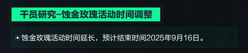 调整内容:蚀金玫瑰活动时间延长,预计结束时间为2025年9月16日。