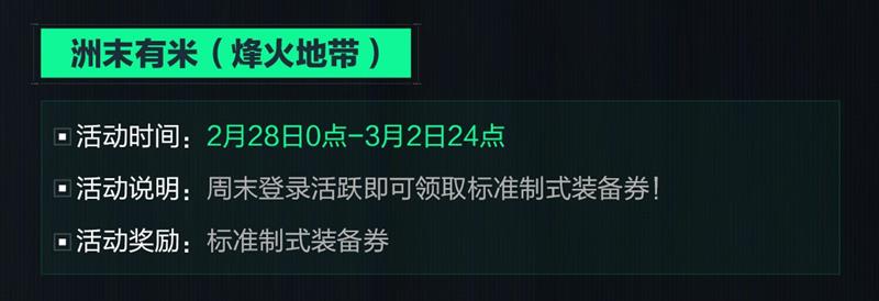 活动说明:周末登录活跃即可领取标准制式装备券!