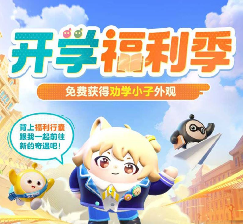 2月28日(周五)-3月27日(周四),限时活动【开学福利季】开启。每周五至周末签到即可轻松领取福利币,免费抽取典藏外观劝学小子,另有年级主任套装、配饰汽车钥匙及萌趣表情可爱放送!邀请好友助力还可额外获得福利币,加快外观获取进度哦!