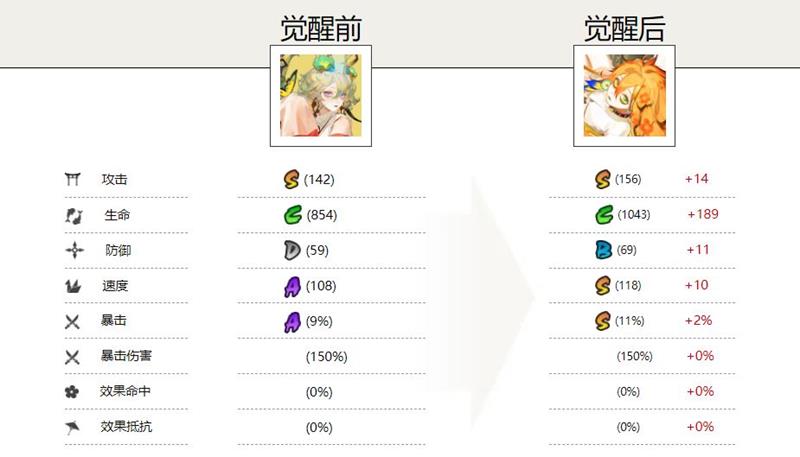 暴击:【觉醒前】A(9%)【觉醒后】S(11%)
