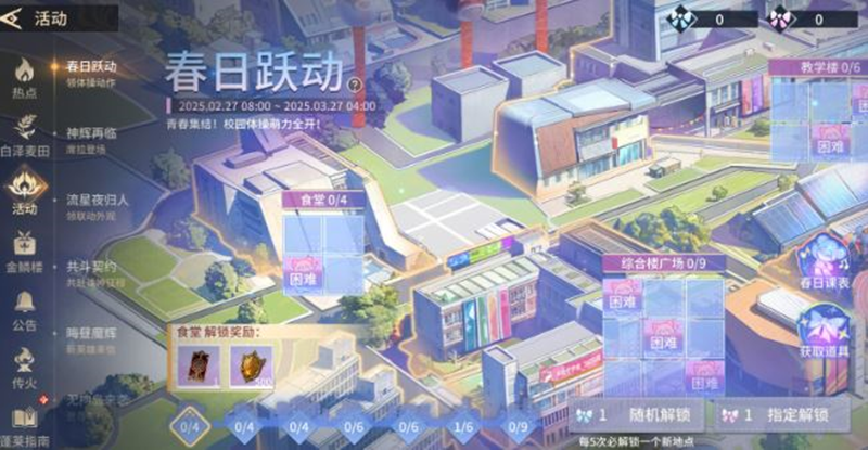2、使用星蓝结,可随机解锁一处校园地点;使用花漾结,可指定解锁一处校园地点。