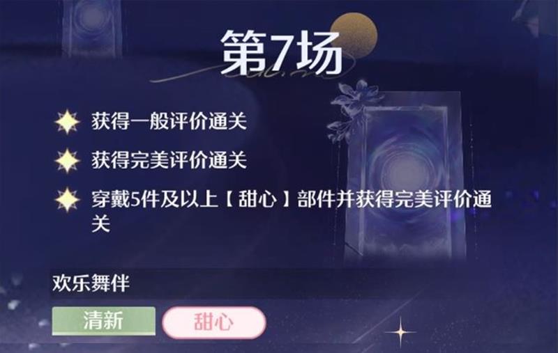 获得一般评价通关、获得完美评价通关、穿戴5件及以上【甜心】部件并获得完美评价通关