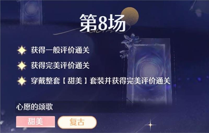 获得一般评价通关、获得完美评价通关、穿戴整套【甜美】套装并获得完美评价通关