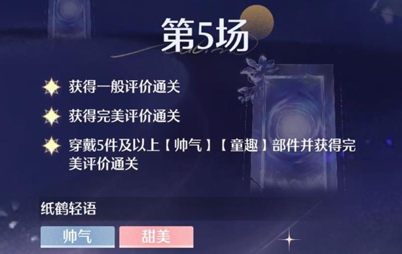 获得一般评价通关、获得完美评价通关、穿戴5件及以上【帅气】【童趣】部件并获得完美评价通关
