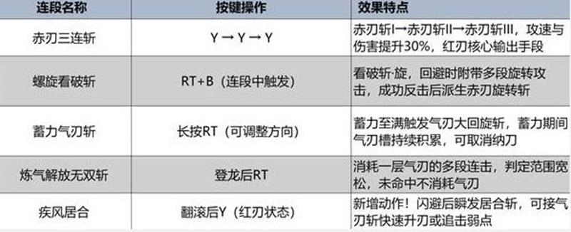 练气槽阶段:通过攻击积累练气值,分为白→黄→红三阶段,红刃状态下攻击力提升30%以上。