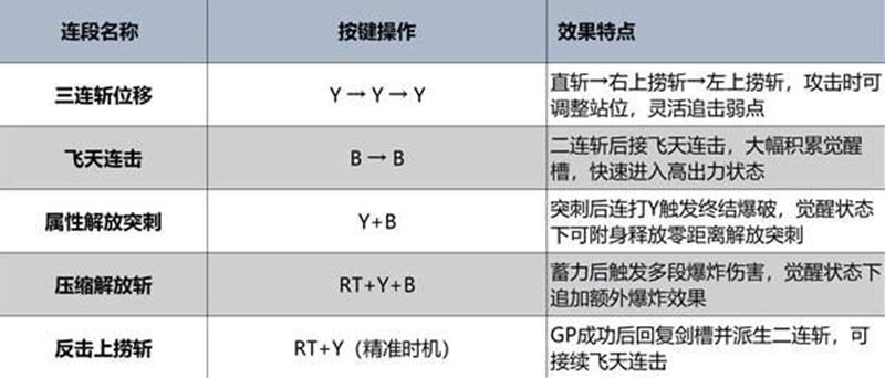 GP技(反击上扬斩)成功触发可回复斩击槽并派生二连斩,兼具资源管理与爆发。