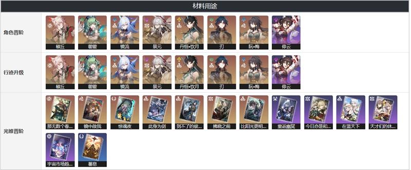 椒丘、藿藿、镜流、景元、丹恒•饮月、刃、阮•梅、停云等角色行迹升级、角色晋阶突破都需要消耗永寿幼芽。