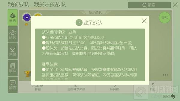 2、体会是呢过战队奖杯数至3000,可以提升战队星级至1星;