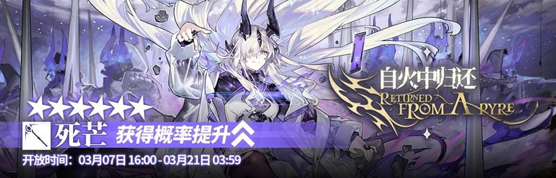 与此同时,【自火中归还】限时寻访也将于3月7日至3月21日开启。本次寻访中,六星干员死芒以及五星干员衡沙和钼铅将获得UP机会。此外,新干员死芒、钼铅和水灯心的信赖获取也将得到提升,帮助玩家更快地培养新角色。